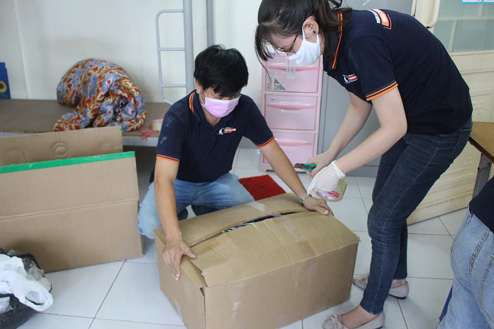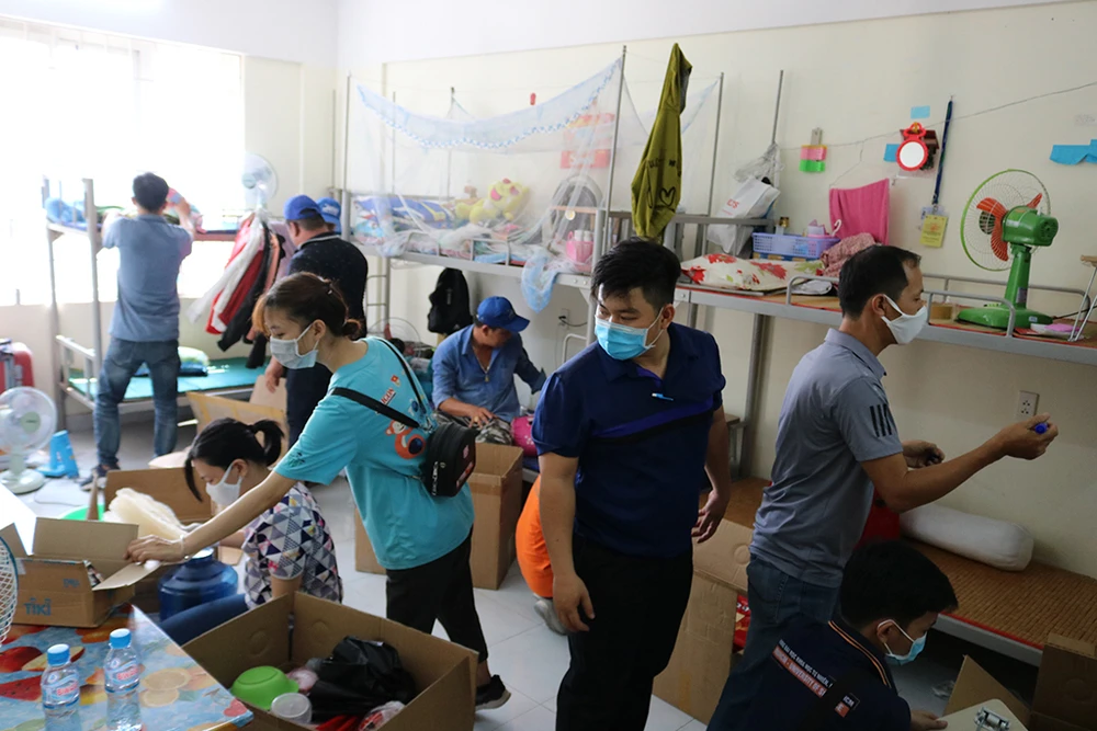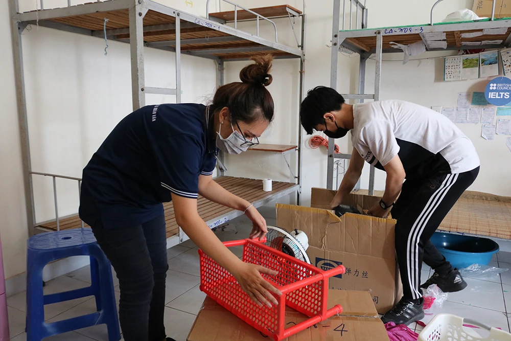 Ghi nhận trong ngày 24-3, số lượng tình nguyện viên lên đến 120 người phụ trách hỗ trợ việc đóng gói đồ đạc của sinh viên, chuẩn bị phòng ốc để phục vụ những người được cách ly tại ký túc xá.