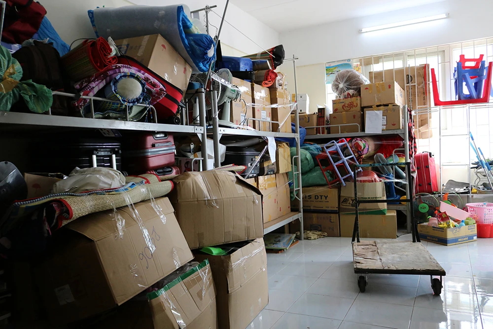 Khu tập trung đồ của sinh viên sau khi dọn dẹp và tổng hợp.