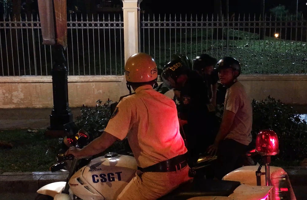 Nhiều trường hợp như chạy xe “kẹp 3”, không đội nón bảo hiểm, tụ tập thành đoàn... bị xử lý. Hàng trăm xe máy và người vi phạm được đưa về các đội cảnh sát giao thông để lập biên bản.
