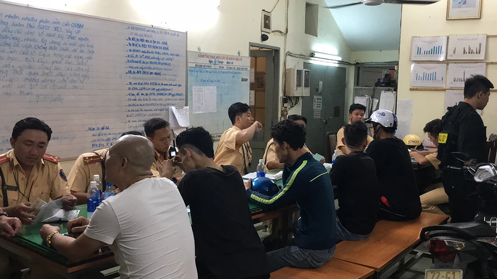 Hàng trăm phương tiện có dấu hiệu vi phạm đã bị cảnh sát mời về trụ sở làm việc. Ảnh Nguyễn Tân.