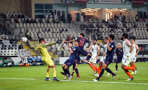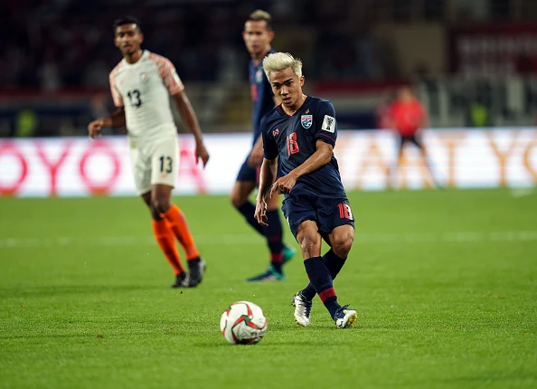 Trung phong Sunil Chhetri (11) của Ấn Độ phá nát hàng phòng ngự Thái Lan