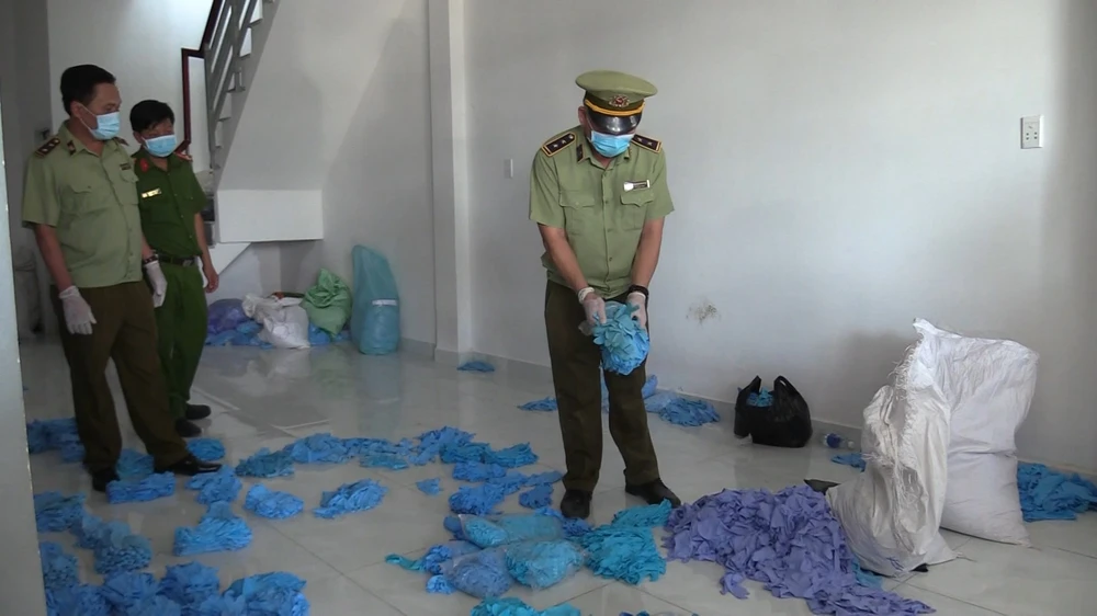 Ngày 24-8, Cục quản lý thị trường tỉnh Bình Dương phối hợp với phòng Cảnh sát kinh tế công an tỉnh này bắt quả tang cả chục công nhân tái chế hàng triệu đôi găng tay và đồ bảo hộ y tế tại một khu nhà trọ ở xã Lai Hưng, huyện Bàu Bàng, tỉnh Bình Dương.
