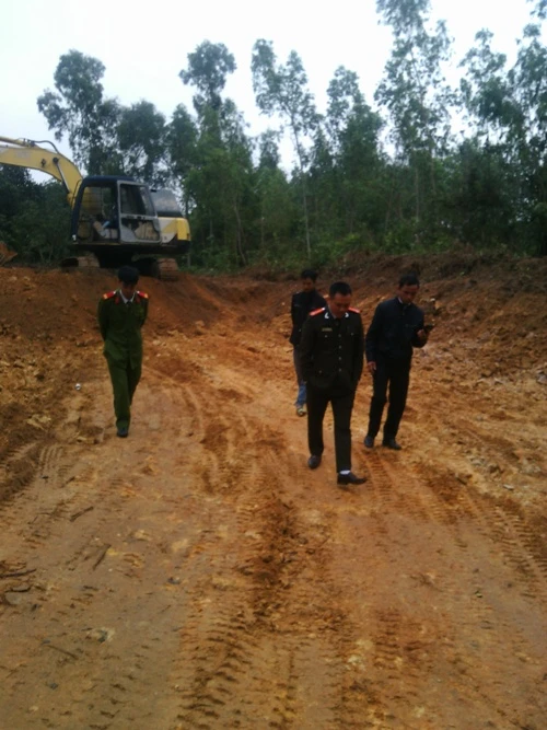 Khi công an xã yêu cầu ngừng việc đào mỏ trái phép, các đối tượng không chấp hành. Sau đó ít phút, khi công an huyện có mặt, nhóm người lái máy xúc bỏ đi, các xe ô tô này cũng rời khỏi hiện trường.