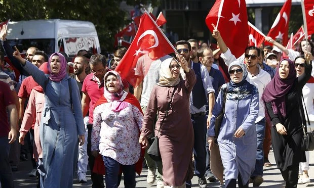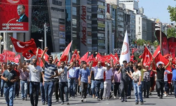 Trong một diễn biến khác, hàng ngàn người dân Thổ Nhĩ Kỳ tại thủ đô Ankara, thành phố Istanbul và nhiều thành phố lớn đã xuống đường tuần hành ủng hộ Tổng thống Erdogan, nền dân chủ Thổ Nhĩ Kỳ và ăn mừng chiến thắng trước phe đảo chính. Tại thủ đô Ankara, dòng người đang đổ về Bộ tổng tham mưu quân đội để thể hiện sự phẫn nộ trước các âm mưu đảo chính.