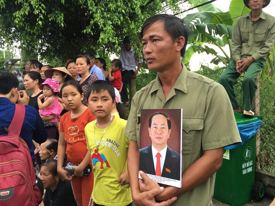 Người dân ôm di ảnh Chủ tịch nước khi tiễn đưa.
