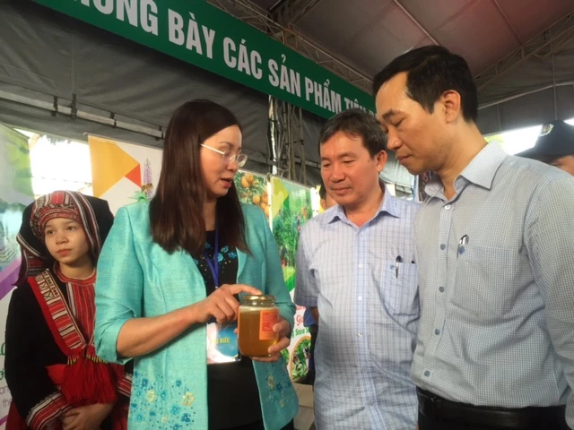 Phó Giám đốc Sở Công Thương TP.HCM Nguyễn Phương Đông (giữa) tham quan gian hàng đặc sản Hà Giang