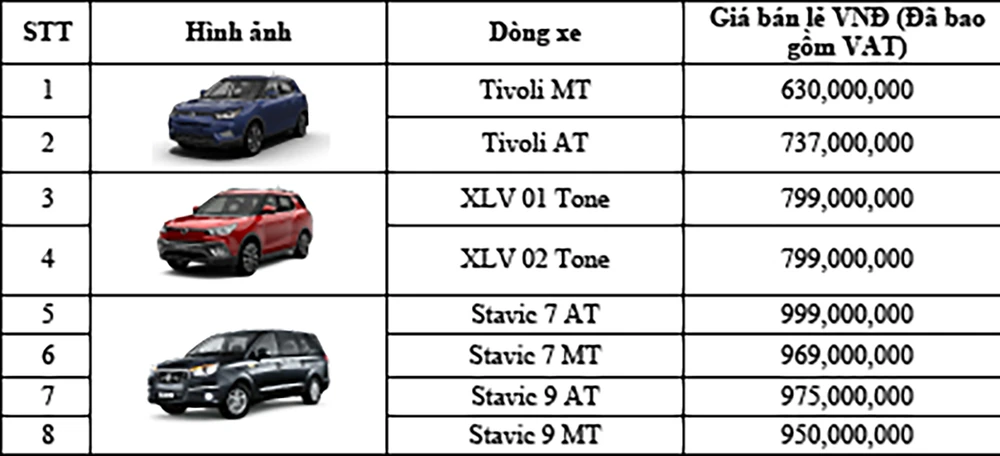 Theo đó, thông qua hệ thống đại lý của Daehan Motors, khách hàng mua các mẫu xe SsangYong, như: SsangYong Tivoli MT; SsangYong Tivoli AT; SsangYong XLV sẽ nhận được nhiều ưu đãi.