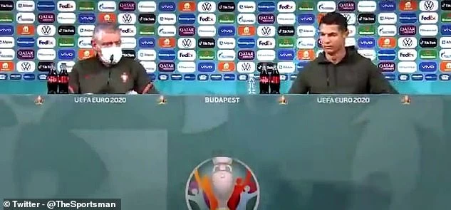 Coca-Cola là nhà tài trợ chính của Euro 2020, vì vậy, không có gì ngạc nhiên khi các chai nước Coca-cola có mặt trên bàn trong phòng họp báo. Ronaldo bị ám ảnh về sức khỏe. Anh là người có chế độ tập luyện, ăn uống rất khắt khe và khoa học.