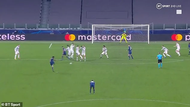 Có đến 3,4 cầu thủ Juventus lập hàng rào cẩu thả ở pha bóng này và Ronaldo là một trong số đó. Chính Ronaldo đã bị Sergio Oliveira “xỏ chân” trong tình huống sút phạt đó.