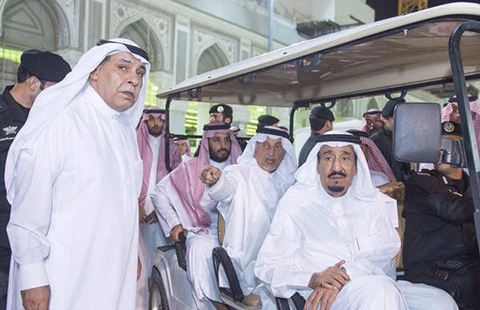 Quốc vương Salman đến hiện trường thị sát và thăm hỏi các nạn nhân (ảnh). Quốc vương khẳng định ngay khi có kết quả điều tra sẽ công bố cho dân chúng biết.