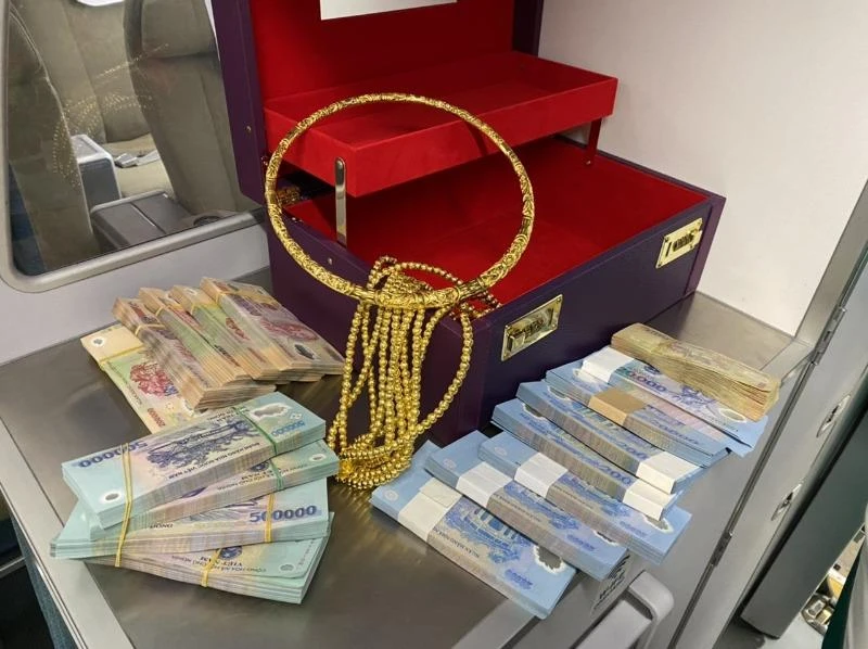 Số tiền hơn 300 triệu và trang sức khách bỏ quên trên chuyến bay VN1262 từ TP.HCM đi Vinh ngày 16-3. Ảnh: VNA