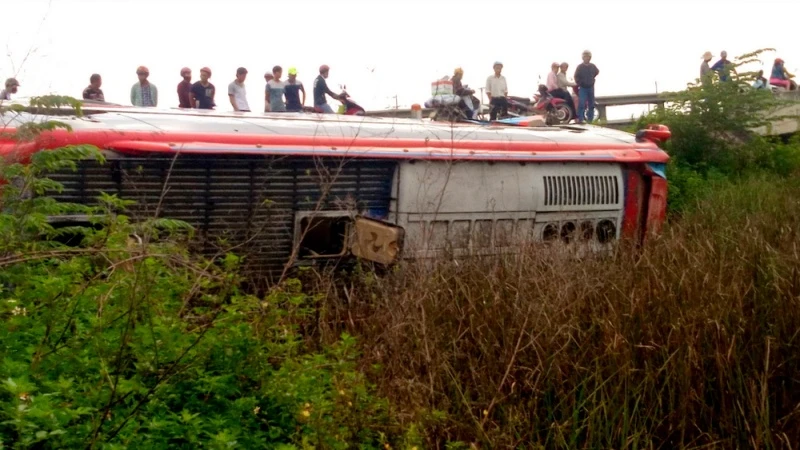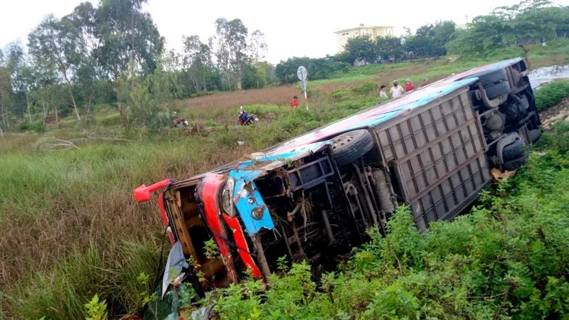 Khi đến địa điểm trên, chiếc xe bất ngờ bị lật nghiêng xuống lề bên đường. Hành khách vô cùng hoảng loạn. Tại hiện trường, chiếc xe nằm nghiêng hẳn sang một bên, hư hại nặng. Ba nạn nhân bị thương, trong đó một người bị thương nặng được đưa đi cấp cứu.