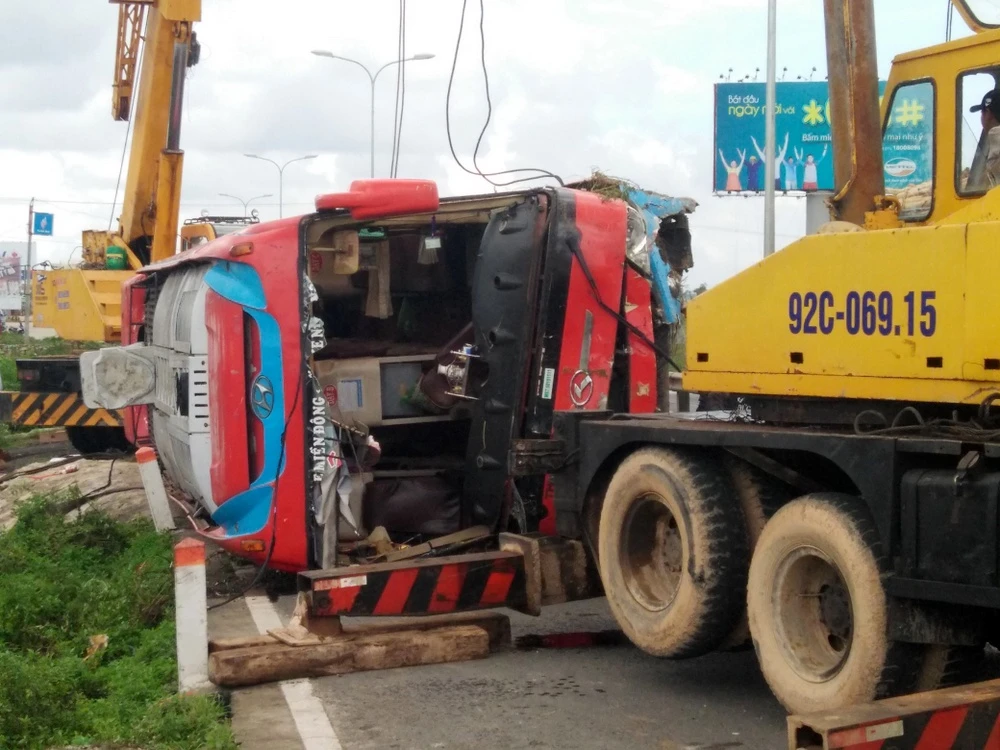Đến 12h30 cùng ngày, xe khách 51B- 020.96 bị lật trên tuyến Quốc lộ 1A qua địa phận đoạn qua thôn An Thành 2 (xã Bình An, huyện Thăng Bình, Quảng Nam) đã được trục lên và đưa khỏi hiện trường để thông tuyến giao thông.