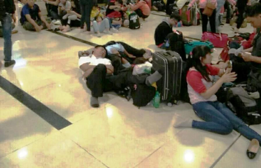 Hành khách la liệt chờ được bay.