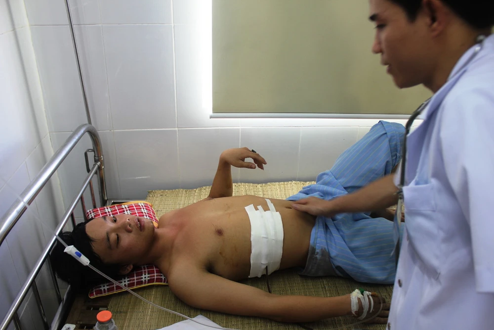Anh Hồ Sỹ Hoàng đang nằm cấp cứu tại BV Hữu nghị đa khoa tỉnh Nghệ An.