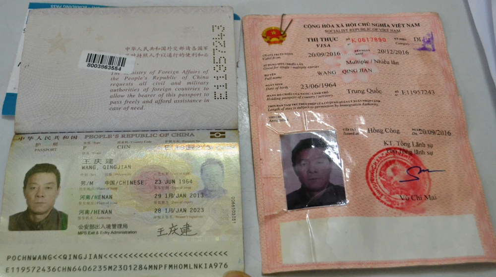 Thẻ visa của đối tượng Wang Qing Jian. Ảnh: TT