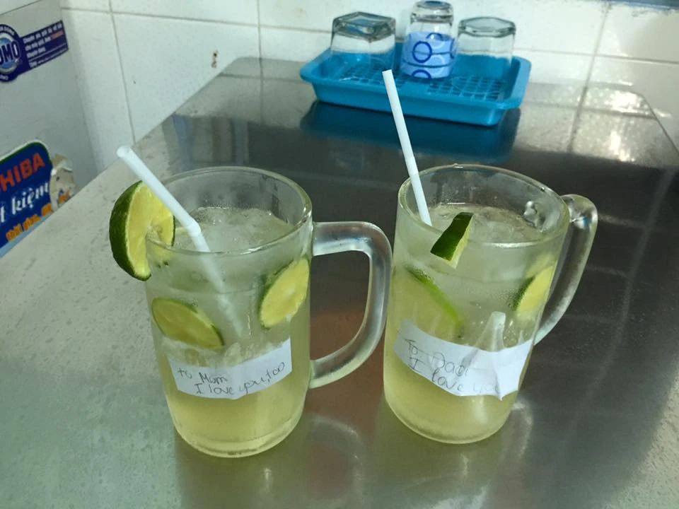 "Cặp đôi" ly nước chanh mà con gái pha cho ba mẹ kèm lời nhắn dễ thương.