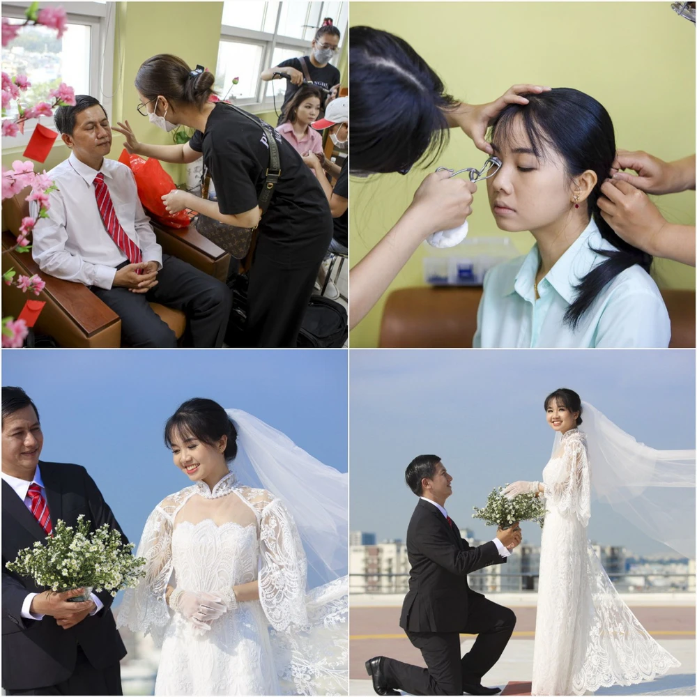 Yêu nhau 9 năm, tình yêu của chị Lê Thị Huỳnh Như, phòng quản lý chất lượng BV Quân Y 175 và anh Trần Tấn Lộc, giảng viên trường Cao đẳng Điện lực TP.HCM hồi hộp mong chờ một lễ cưới. Tuy nhiên, kế hoạch tổ chức lễ cưới vào cuối tháng 11-2021 của anh chị phải tạm gác lại vì do dịch COVID-19. Và đến tận hôm nay, khi vợ chồng chị cùng nhiều cặp đôi khác được tổ chức một đám cưới lung linh tại BV, chị Như vẫn chưa khỏi ngỡ ngàng “đây thực sự là một giấc mơ”.