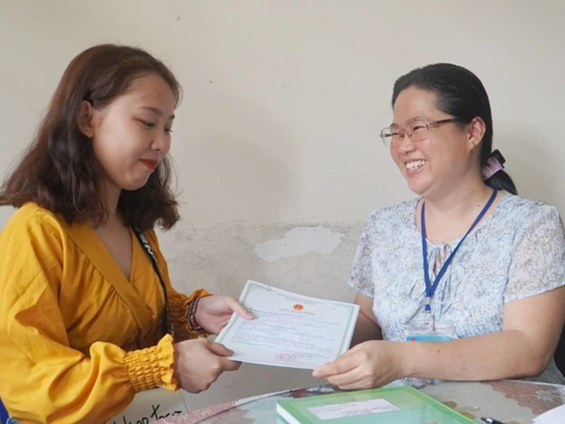Cầm trên tay tờ giấy khai sinh sau 17 năm chờ đợi, em Nguyễn Thị Bích Tuyền (SN 2003) òa khóc vì quá vui mừng, rối rít cám ơn nữ cán bộ tư pháp hộ tịch xã Phạm Văn Hai, huyện Bình Chánh, TP.HCM.