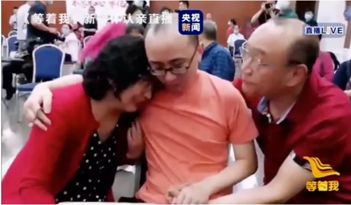 Gia đình bà Li đoàn tụ con trai. (Ảnh chụp từ video phát sóng trên CCTV)