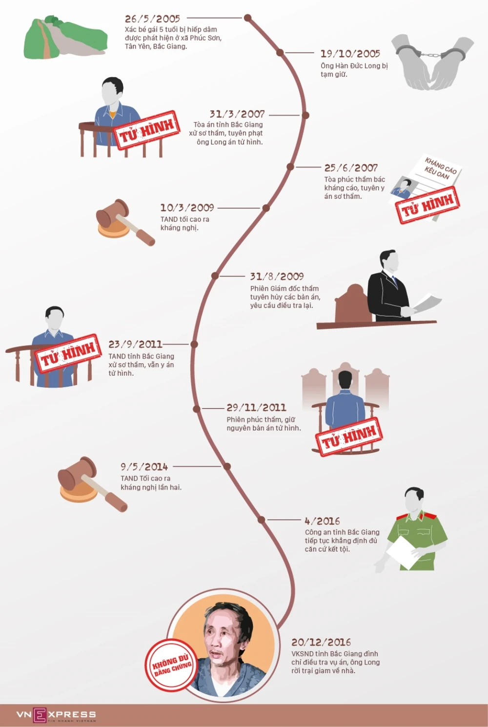 Sau 11 năm bị bắt với nhiều phiên tòa được mở, ngày 20-12, ông Hàn Đức Long được đình chỉ điều tra, khôi phục các quyền lợi.
