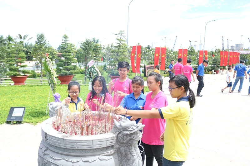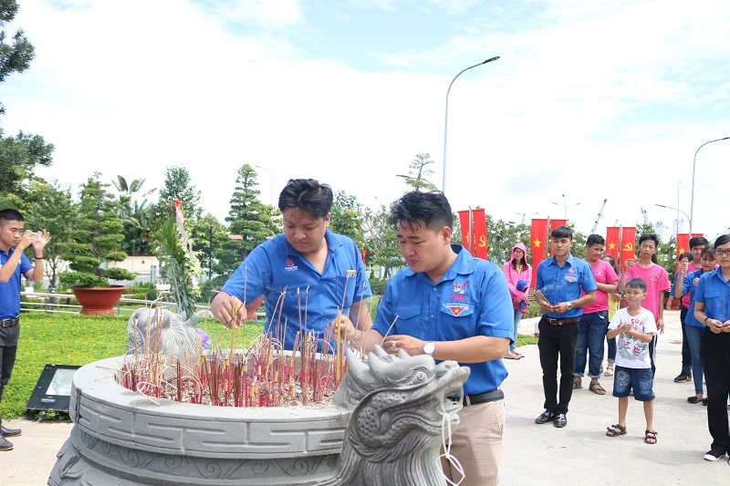 Đoàn phường An Phú cũng đến thắp nhang tưởng nhớ công ơn của các anh hùng, liệt sĩ. ẢNH: THANH TUYỀN.