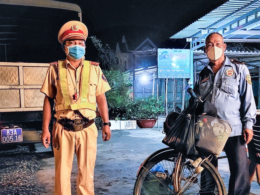Cụ thể, trong lúc thực hiện nhiệm vụ, lực lượng chức năng phát hiện một người đàn tên Thạch Ớt (58 tuổi, quê ở thị xã Vĩnh Châu) đạp xe đến chốt kiểm soát trong tình trạng sức khỏe suy kiệt. Anh Ớt kể trước đây anh làm bảo vệ cho một công ty ở huyện Bình Chánh (TP.HCM) với mức lương khoảng 5,7 triệu đồng/tháng.