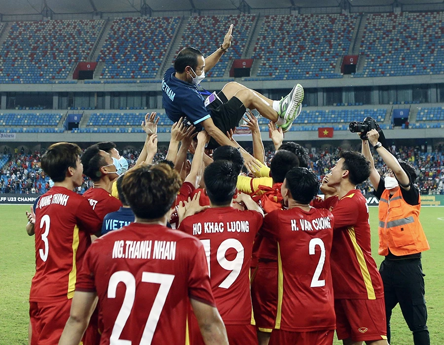 Thật không dễ dàng cho HLV Đinh Thế Nam với một lực lượng sứt mẻ qua từng trận vì dương tính với COVID-19 và hai lần bổ sung quân với 10 cầu thủ mới vẫn đi một mạch đến ngôi vô địch. Đá bốn trận, trong đó có hai lần thắng U-23 Thái Lan ở vòng bảng và chung kết, các học trò ông Nam chơi mỗi trận bằng một đội hình khác nhau, ghi chín bàn, không để lọt lưới. Trận bán kết với Đông Timor thiếu người, thầy Nam buộc lòng phải đưa cả thủ môn Liêm Điều lên đá tiền đạo.