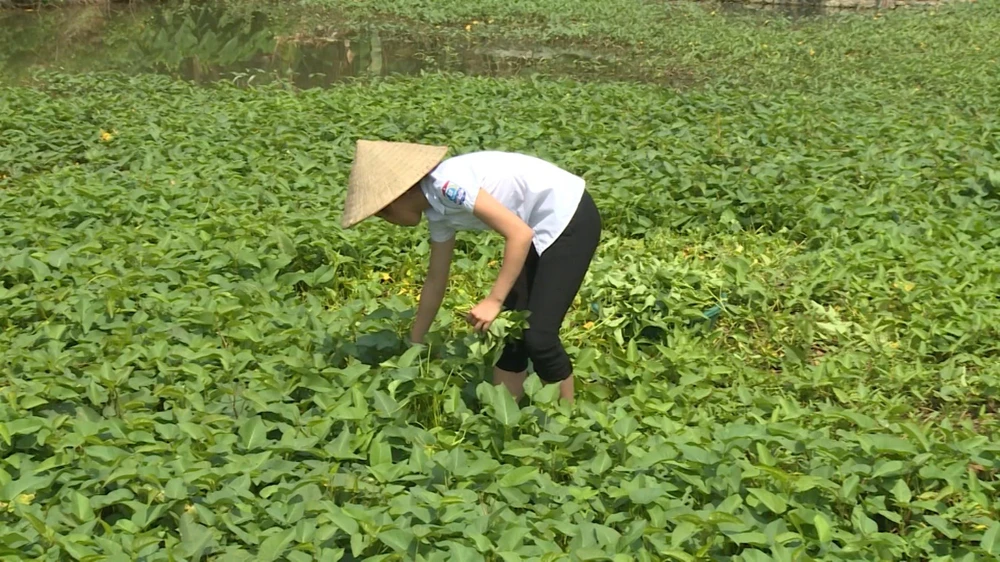 Phương Anh thường dành thời gian rảnh trồng rau để bán.
