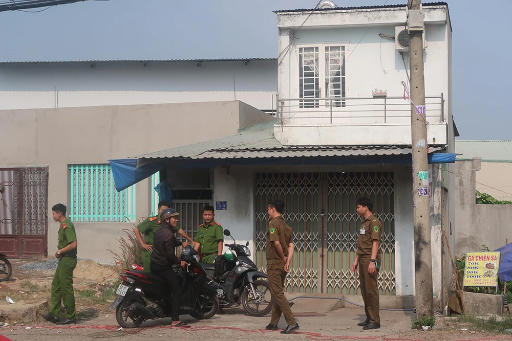 Cảnh sát vẫn đang phong tỏa, phục vụ công tác khám nghiệm hiện trường. Ảnh HT.
