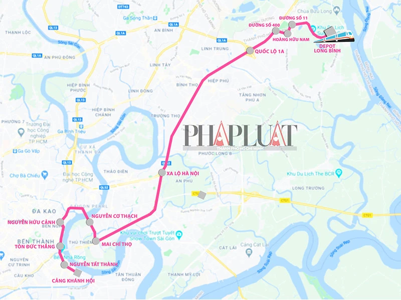 | Dự kiến việc vận chuyển tàu metro 1 bằng xe siêu trọng, siêu trường từ cảng Khánh Hội về depot Long Bình sẽ diễn ra khoảng 11 giờ đêm nay (9-10). Lộ trình di chuyển như sau: Đường Nguyễn Tất Thành - Tôn Đức Thắng - Nguyễn Hữu Cảnh - Nguyễn Cơ Thạch - Mai Chí Thọ - xa lộ Hà Nội - quốc lộ 1 - đường số 400 - Hoàng Hữu Nam - đường số 11 - depot Long Bình. Tổng chiều dài lộ trình di chuyển của xe chở tàu metro 1 là 26 km và dự kiến tới depot Long Bình khoảng 3 giờ sáng 10-10. |