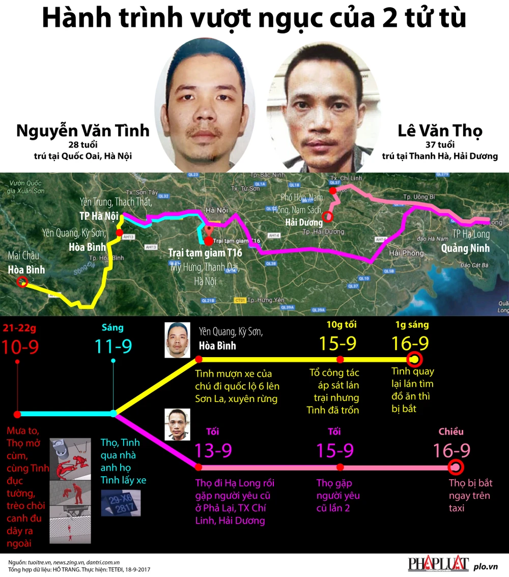 (PLO)- Hai tử tù Nguyễn Văn Tình và Lê Văn Thọ bị biệt giam chung phòng ở trại tạm giam T16, Bộ Công an. Rạng sáng 11-9, cả hai đào thoát và gây chấn động dư luận. Ngay sau đó lực lượng công an đã huy động lực lượng bắt được Tình và Thọ.