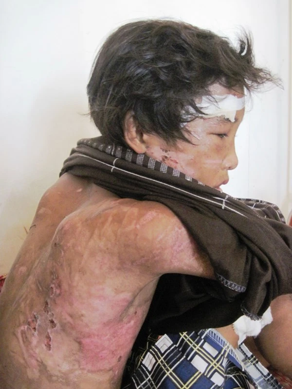 Vào tháng 5/2010, Hào Anh được giải cứu, mang đầy thương tích do vợ chồng chủ trại tôm giống Minh Đức, ở xã Ngọc Chánh (Đầm Dơi, Cà Mau) hành hạ. Ảnh: tienphong