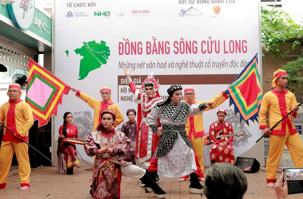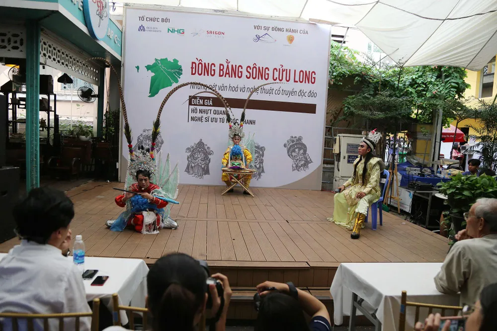 Tiết mục hát bội nằm trong chương trình buổi tọa đàm văn hóa chủ đề Đồng bằng sông Cửu Long - những nét độc đáo văn hóa và nghệ thuật truyền thống do Đường sách TP.HCM cùng khoa du lịch trường Đại học Hoa Sen phối hợp với CLB Nghiên cứu và Vinh danh Văn Hóa Nam Bộ tổ chức vào chiều 13-7.