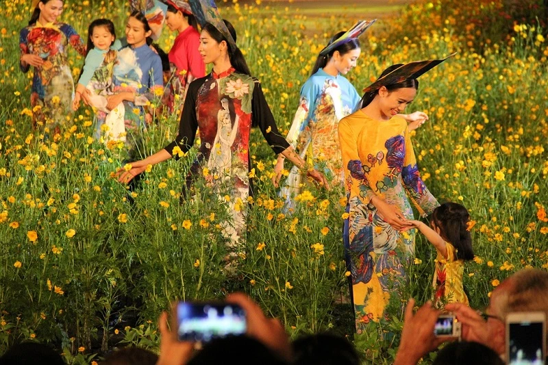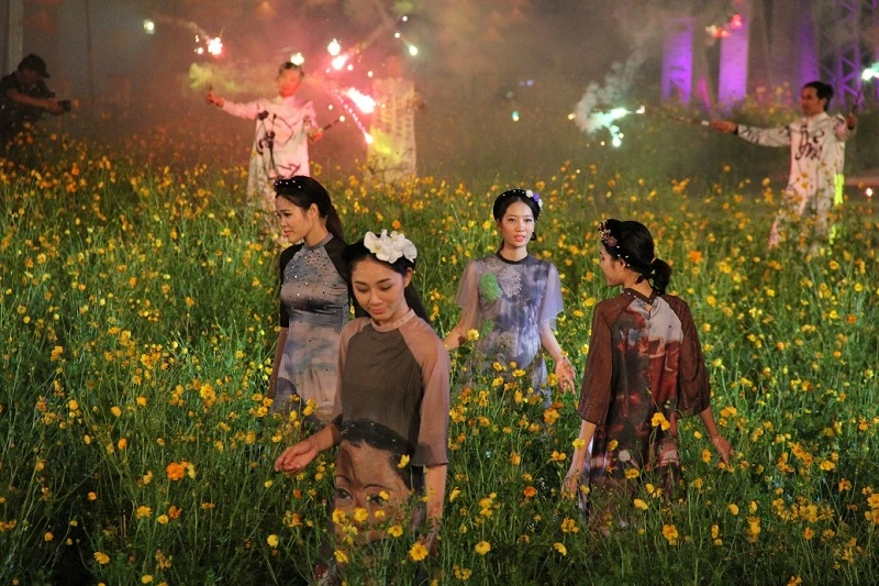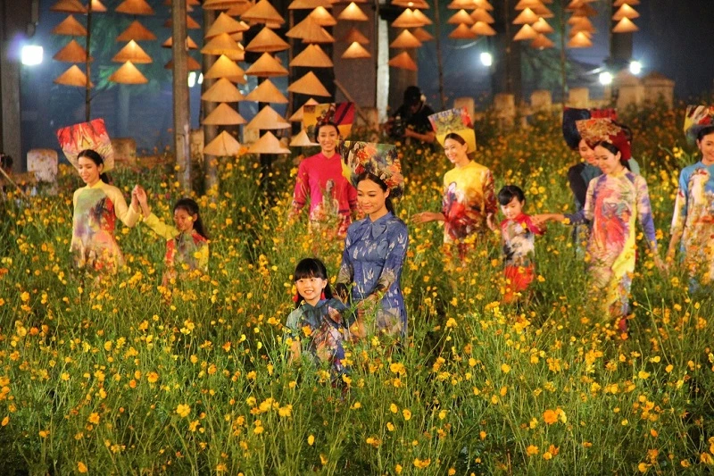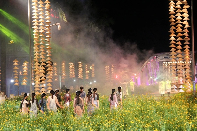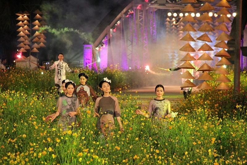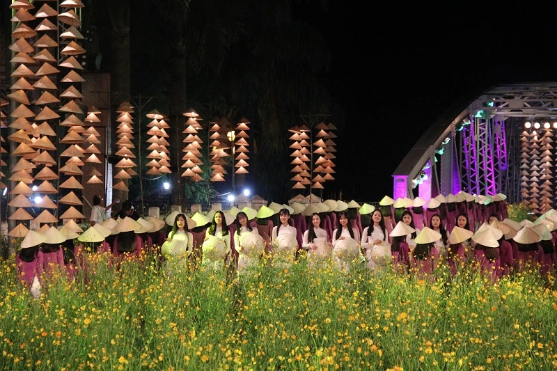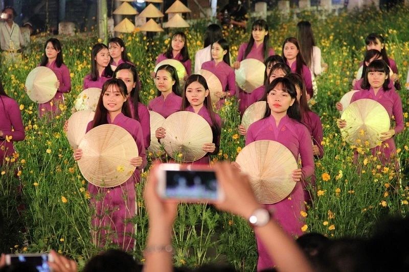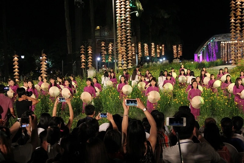 Chương trình không thể thiếu những tà áo dài tím cùng với chiếc nón lá.