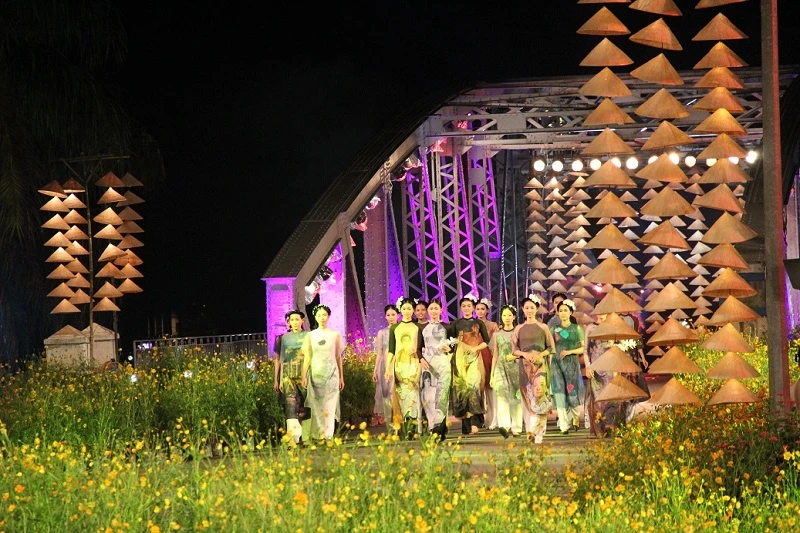 Tối 30-4, tại TP Huế đã diễn ra Lễ hội áo dài với chủ đề “Hội họa Huế và áo dài” thu hút hàng ngàn người dân và khách du lịch tham dự. Không gian trình diễn lễ hội áo dài hết sức độc đáo, diễn ra tại cầu Trường Tiền và đường Lê Lợi càng làm tôn lên vẻ đẹp của bộ sưu tập áo dài trong lễ hội lần này.