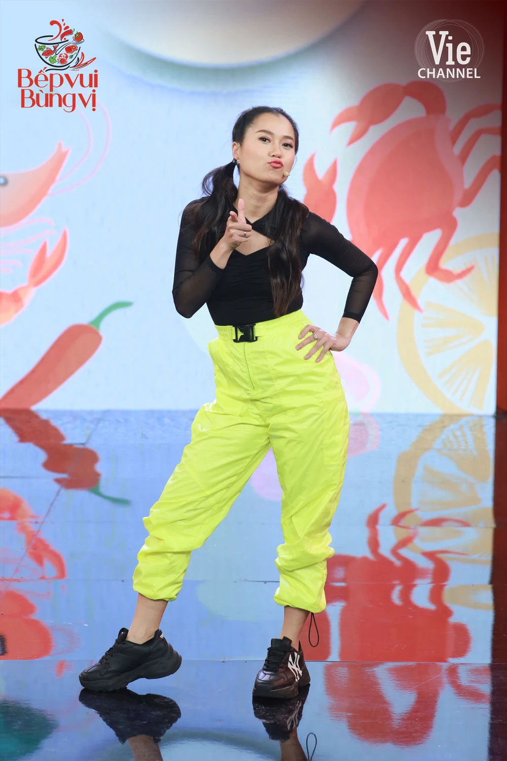 Sau phần giới thiệu của MC Trường Giang để mở màn cho tập đầu tiên của Bếp vui bùng vị là sự xuất hiện khá điềm đạm và nhẹ nhàng của hai đội trưởng Hari Won và Lâm Vỹ Dạ.