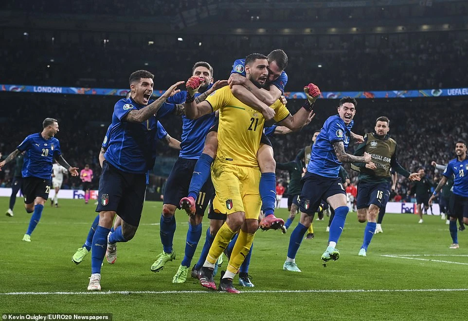 Luke Shaw mở tỉ số cho Anh ngay phút thứ hai nhưng Anh không giữ được lợi thế khi để Bonucci gỡ hòa 1-1 trong hiệp hai. Trong loạt đá luân lưu, có đến 3 cầu thủ đá hỏng gồm Rashford, Sancho và Saka.