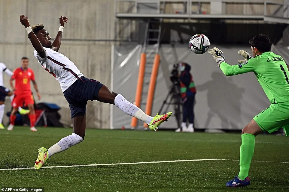 Sang hiệp hai, tuyển Anh tiếp tục bùng nổ khi ghi thêm 3 bàn thắng, tiền đạo Tammy Abraham là người nâng tỷ số lên 3-0 cho “tam sư” ở phút 59. Sancho có pha tạt bóng vào vòng cấm cho số 9 của tuyển Anh vung chân đệm bóng cận thành, khiến thủ môn của Adorra không kịp bắt bóng cứu thua.