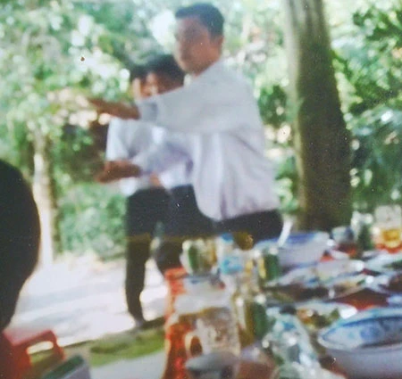 Bàn ăn của ông Trọng có bia trên bàn và thùng bia ngay chân ghế. Ảnh do nạn nhân cung cấp.