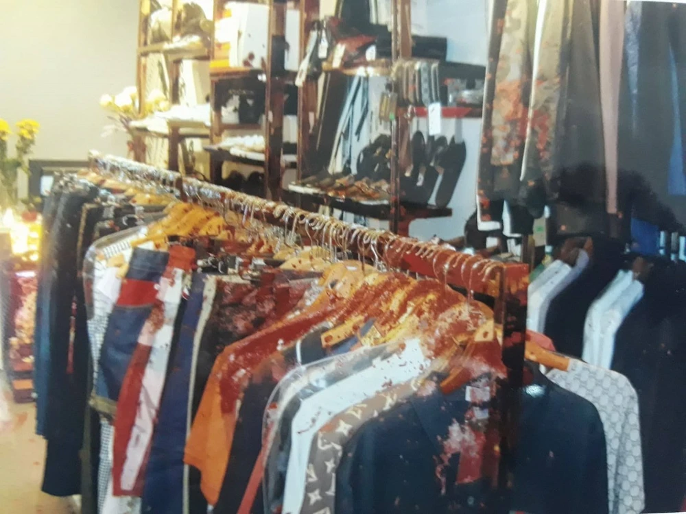 Hậu quả vụ việc khiến hàng trăm chiếc quần áo tại cửa tiệm bị chất bẩn hắt trúng, không thể bán được, dẫn tới gia đình anh T. bị thiệt hại 300 triệu đồng.