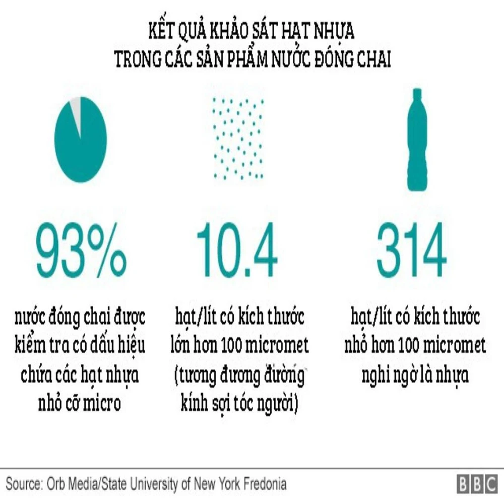 – Mỗi lít nước trung bình có chứa 10,4 hạt nhựa có kích thước lớn hơn bề ngang sợi tóc, khoảng 0,1mm.
