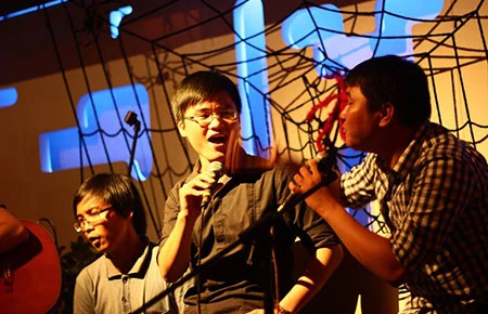 Hỏi ra mới biết quán cà phê hôm nay đông lạ thường vì có chương trình hát cho nhau nghe do nhóm sinh viên Trường ĐH Bách khoa TP.HCM thực hiện để gây quỹ từ thiện. Các sinh viên thực hiện chương trình đến từ câu lạc bộ Guitar ký túc xá ĐH Bách khoa, câu lạc bộ Văn nghệ BKMC và câu lạc bộ Hành trình nhân ái (đều thuộc ĐH Bách khoa).