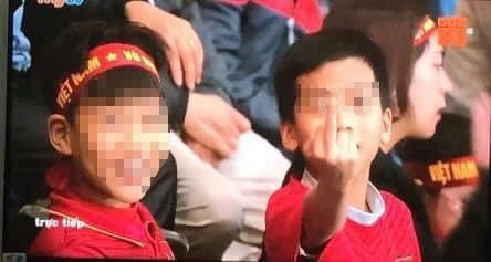 Khuôn mặt cậu bé mà ống kính truyền hình zoom cận cảnh chỉ chừng 10-12 tuổi, mặc áo đỏ cổ vũ, ngồi cạnh phụ huynh ở khán đài A với “ngón tay thối” đưa lên rất “thành thạo” và đáng tiếc là khung hình ấy xuất hiện khá lâu chứng tỏ sự phản ứng chậm của đội ngũ làm chương trình. Ở đây chuyện nghiệp vụ thì chắc chắn đơn vị sản xuất đã có những buổi mổ xẻ nhưng việc một em nhỏ theo người lớn đi cổ vũ bóng đá mà thể hiện hình ảnh xấu trước ống kính thì thật đáng hổ thẹn.