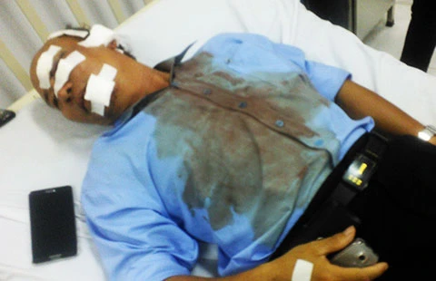 Hạt trưởng Hạt Quản lý đường bộ 73.4 Nguyễn Văn Tuyến mặt đầy thương tích lúc nhập viện. Ảnh: GT