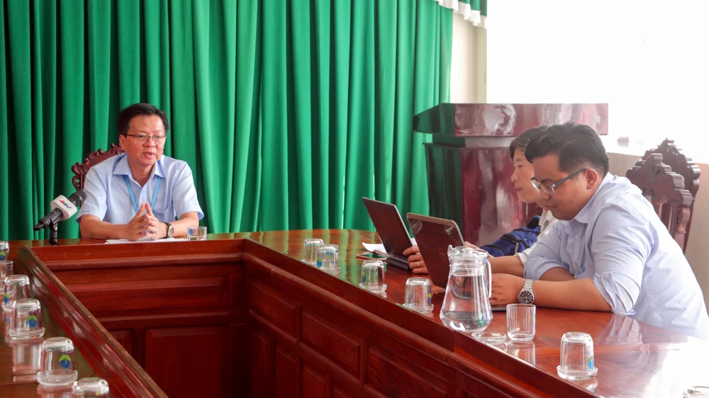 Giám đốc Sở Y tế Hậu Giang thông tin báo chí về việc nhiều cán bộ, lãnh đạo tỉnh đang cách ly tại nhà. Ảnh: CHÂU ANH