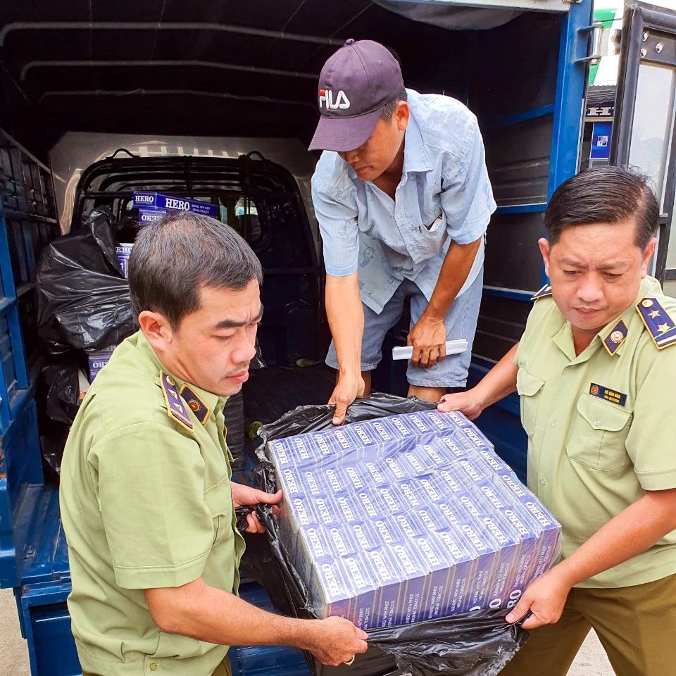 Tiến hành kiểm tra, lực lượng chức năng phát hiện phương tiện đang vận chuyển năm túi nilon màu đen, bên trong chứa hơn 2.100 gói thuốc lá điếu nhãn hiệu Jet và Hero.
