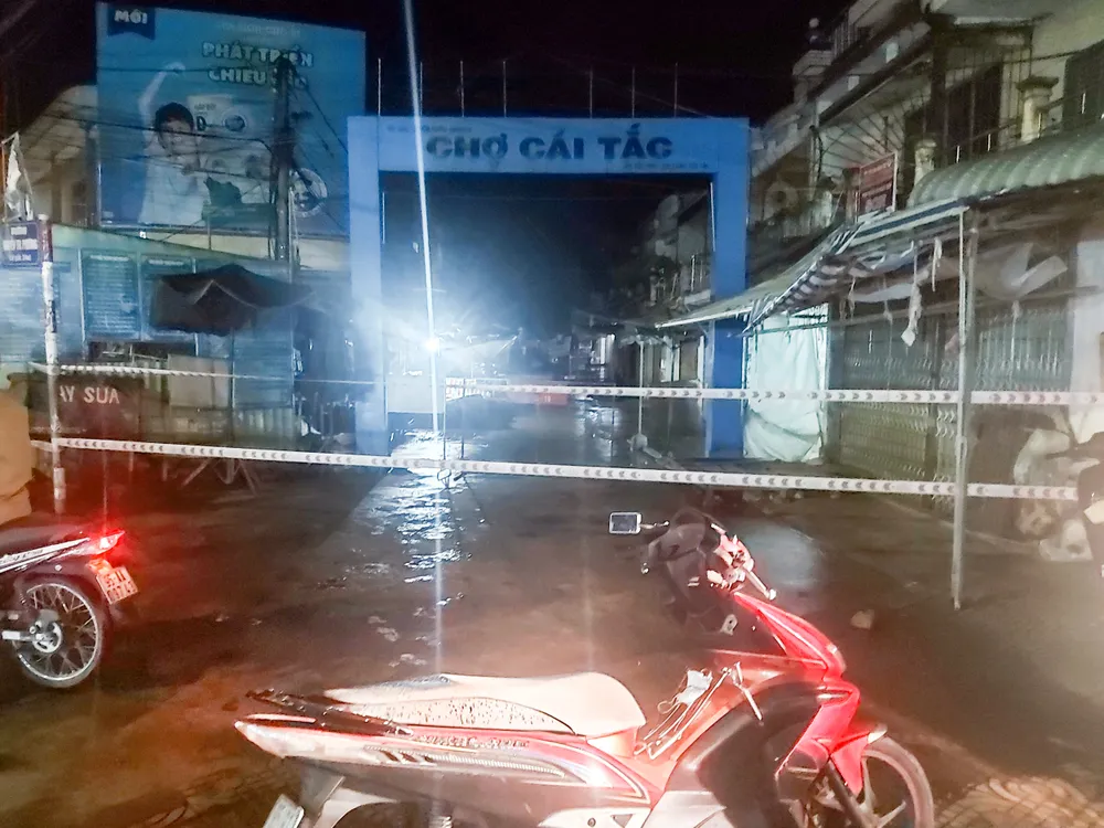 Khuya 15-7, lực lượng chức năng đã tổ chức cách ly y tế chợ Cái Tắc. Ảnh: LÂM HUỲNH