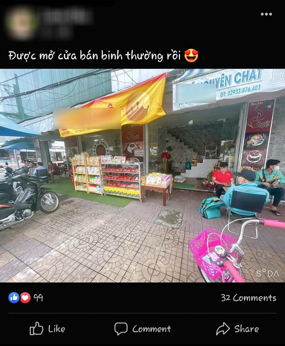 Trong sáng 10-9, nhiều người dân phản ánh một số quán bán cafe ở TP Vị Thanh đã mở cửa kinh doanh. Ảnh: người dân chụp lại từ Facebook