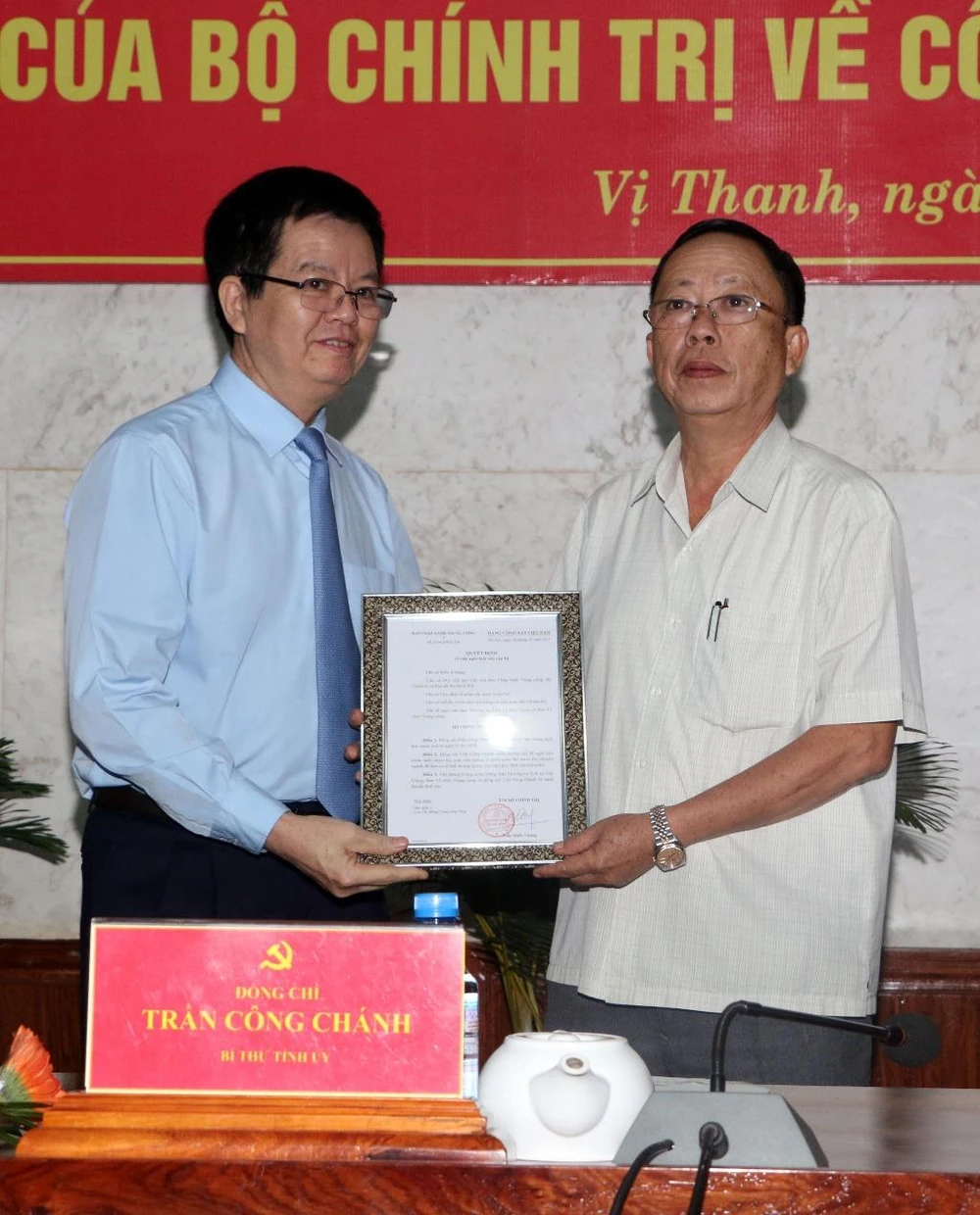 Sáng 30-12, tại Hậu Giang, ông Trần Công Chánh, Bí thư Tỉnh ủy Hậu Giang, chính thức nhận quyết định nghỉ hưu. Theo đó, ông Trần Công Chánh được hưởng chế độ nghỉ hưu trước tuổi từ ngày 1-1--2018.